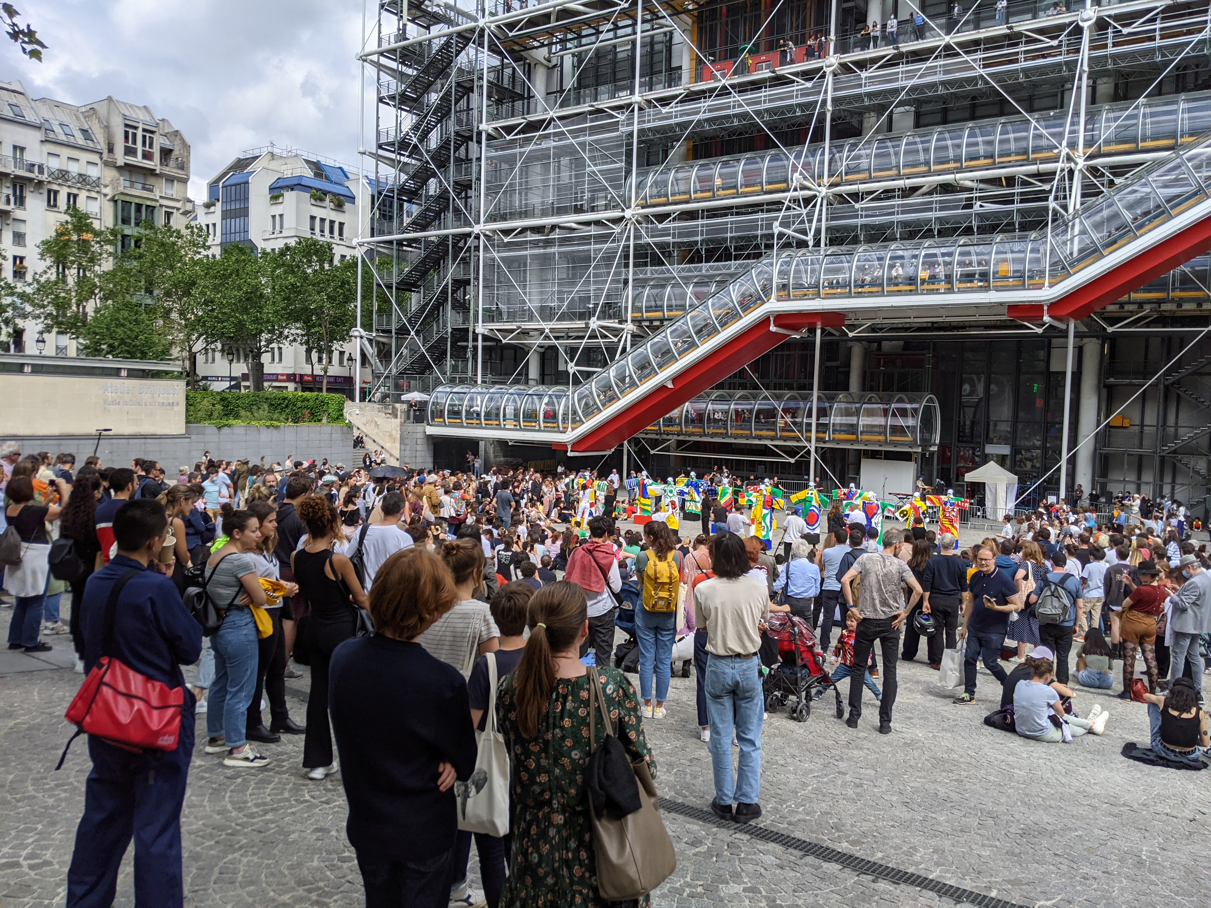 I try not to make generalities, especially since I don’t want to categorize an entire city based on less than a week’s experience, but Paris’ nature is a wholehearted expression of the idiosyncratic. On one end are places like the Louvre, or the attempt to epitomize refinement. The other side is raucous, random, and seat-of-your-pants joy. Outside the Centre Pompidou (the National Museum of Modern Art) local artists headed by renowned fashion designer Jean-Charles de Castelbajac put on a weekend show by showing several examples of “tableaux vivants,” aka “living art” with several artists painting the white robes of figures standing on small plinths. Behind them, French singer-songwriter Julien Granel DJ’ed for the assembled crowd.