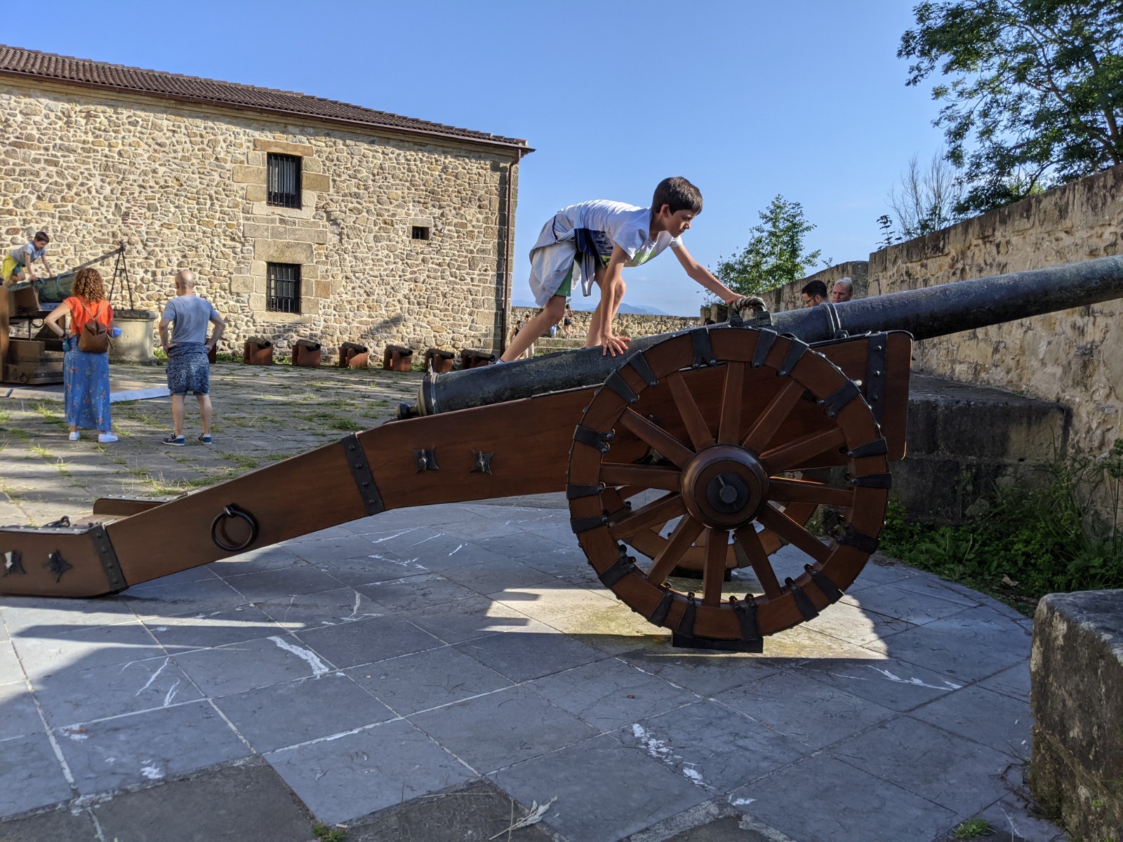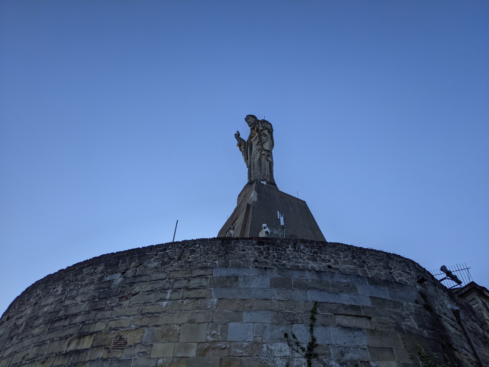 At the top of Urgull now stands the remains of the battery, as well as a massive statue of Jesus installed in the 1950s. Under the site of Christ’s blank gaze there’s a small bar serving local craft beers and wines. It’s better up there, sitting on old stone as the afternoon drifts into evening. And it’s not just the lazy sun that hangs on a loose fulcrum, waiting for some great, invisible force to plunge it finally to the horizon. It’s not the guitar and soft vocals that always seems to sound better in a language you don’t know well, nor the alcohol starting to flow through the veins before settling in the empty stomach. It’s not even the view, that great vista that abuts the ramparts on the other side of the bay, that long edifice leading to the buildings built into the hill, their clay-tiled roofs framing the green mountains to the southeast and the endless Atlantic to the North.