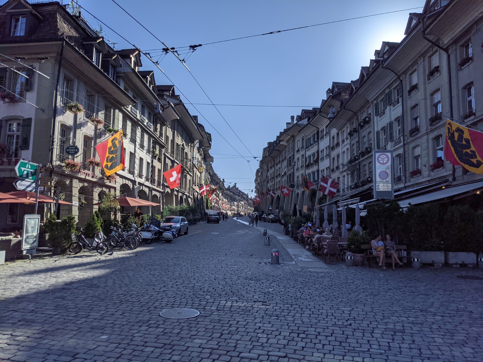 A few days ago I was in Bern, the administrative capital of Switzerland does not feel like a capital of anything. Sure, it’s got a metric ton of public transport options and streets filled with a mix of car and pedestrian traffic that somehow doesn’t erupt into utter chaos with such a lack of streetlights. It has something to do with the character of the place and the people there. The Aare river is running with a tumultuous ferocity from one end of the city to the other, driven by recent rains streaming off the nearby mountains. There is some amount of bustle during the day, but by the evening, around 6 p.m., all things have quieted down. Most shops and museums are closed. The streets are emptied save for those crowded into the cafes. The bars are quiet places where people come to chat with friends with drink in hand. The parks are full of people enjoying the warmth of the descending sun. At one of these parks called the Rosegarten for its many examples of blooming, multicolored roses, a few young people stand around a stereo dancing next to a standing pool. The rest sit near an overlook that displays the capital’s old town, home to dozens of examples of medieval architecture. Most of the city was rebuilt in sandstone after a fire in 1405, but all the local shops are located underneath hard canopies open to the street through arched frames.