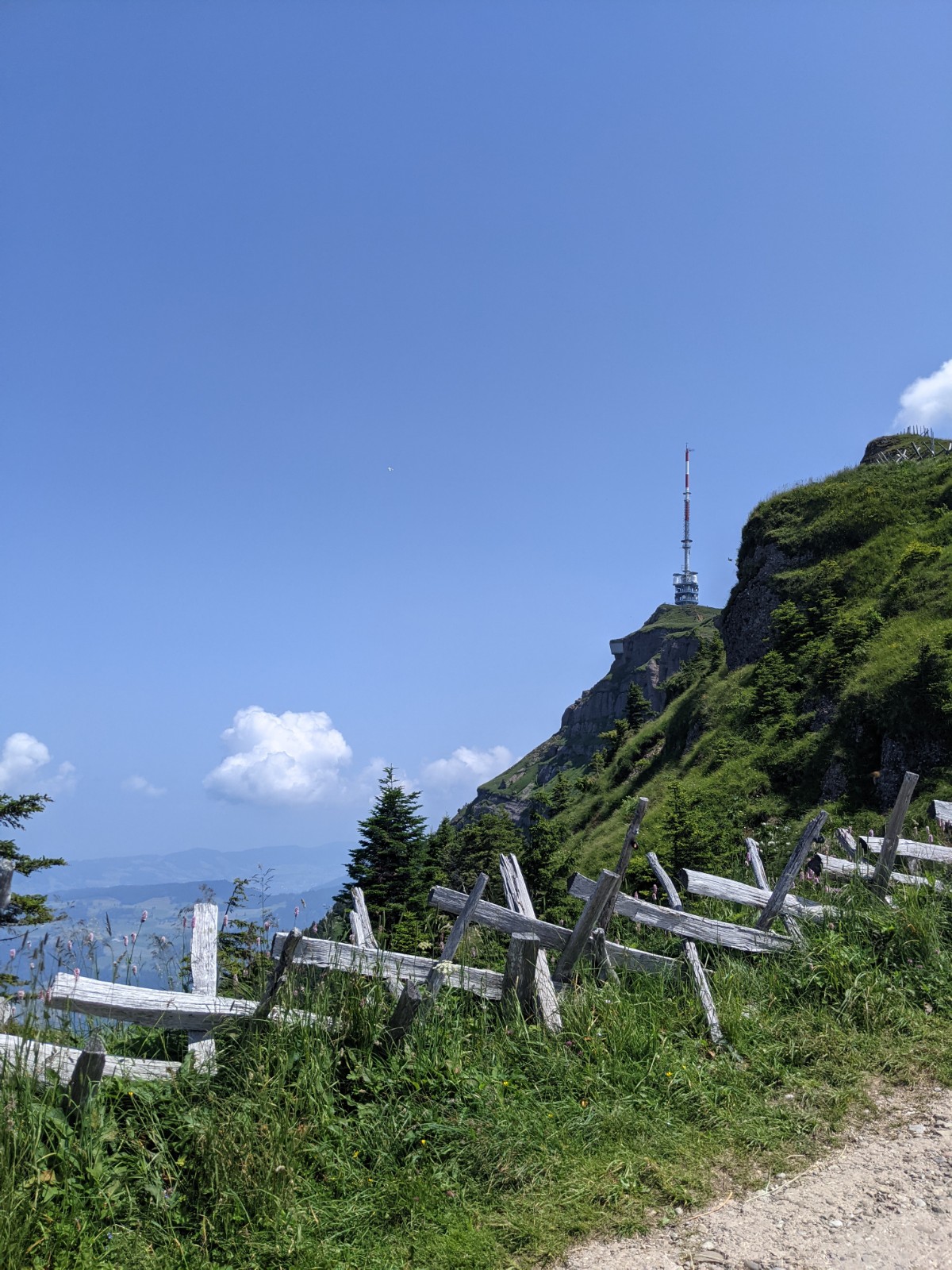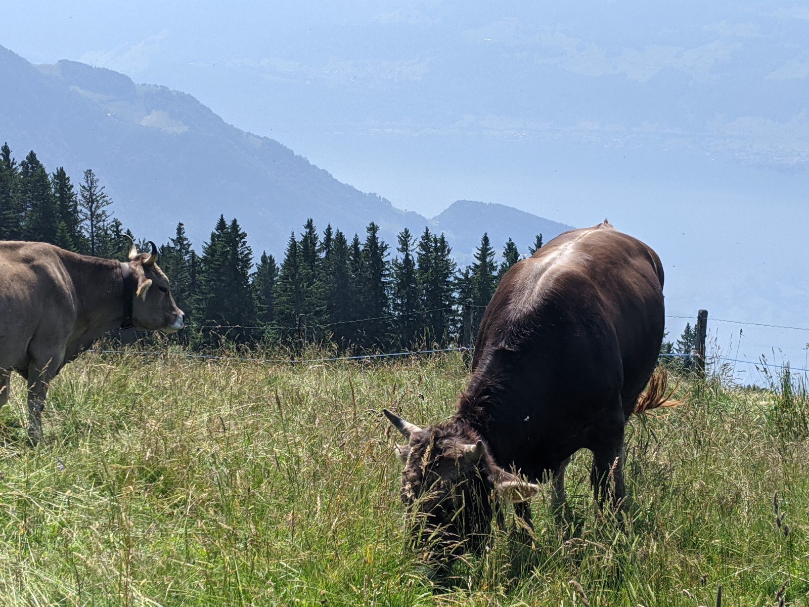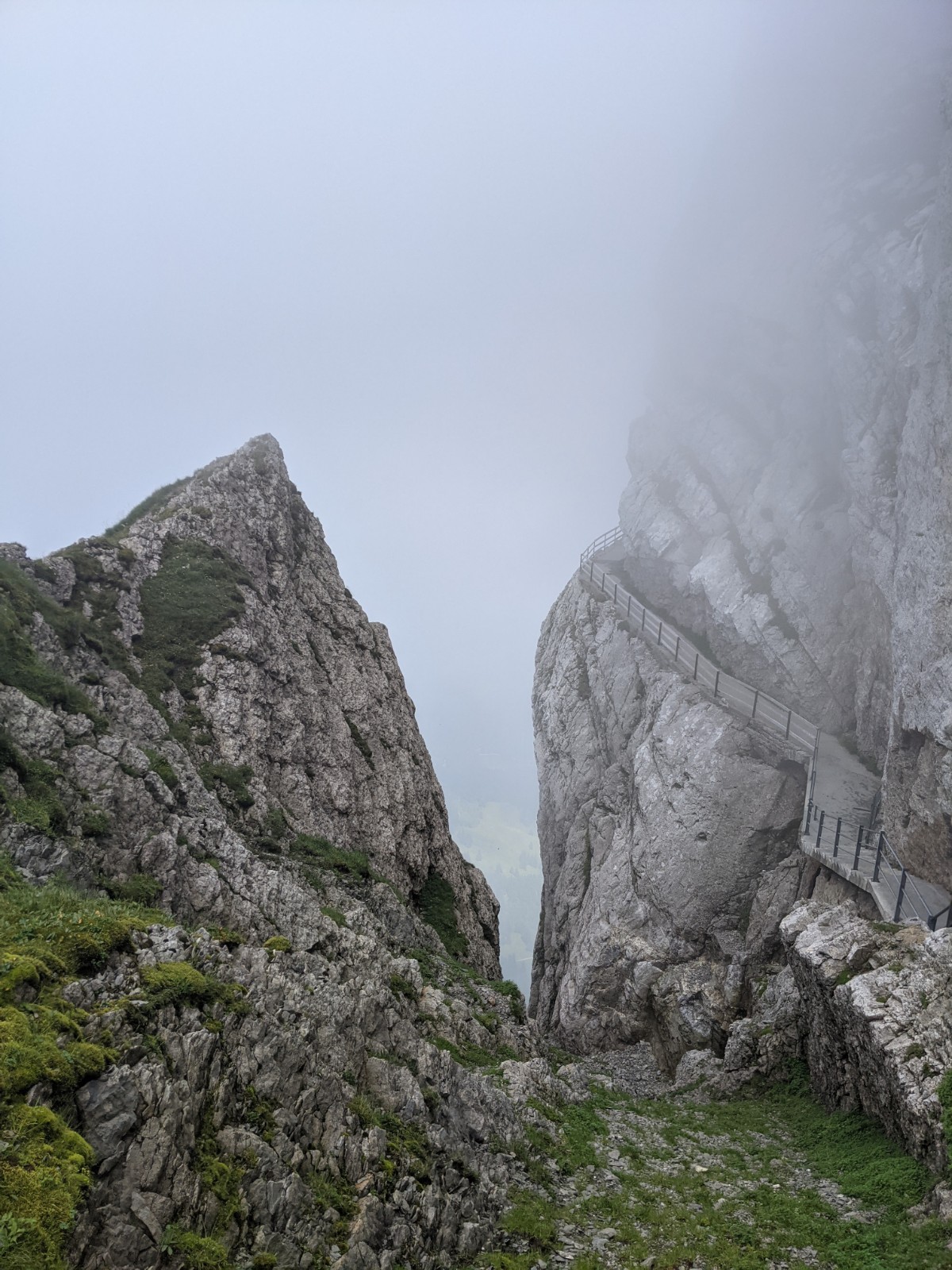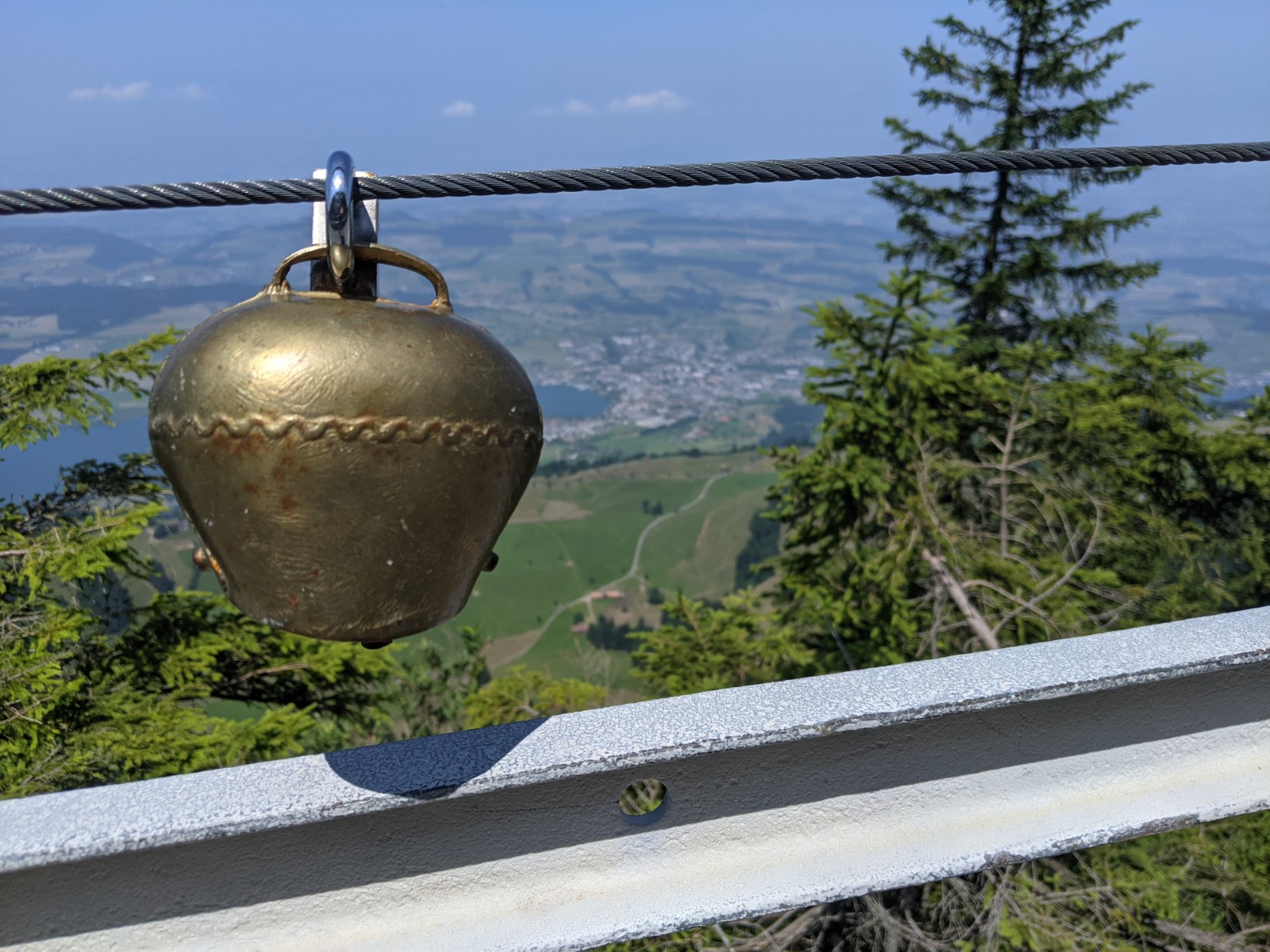 But it’s the clanging bells one hears. The sound comes from every direction, the clattering of thousands of plates stuck loosely in a box, or a bell choir trying and utterly failing to keep time when the members are spread from one end of the cliff side to the other. All these bells hang from the necks of cows as they graze on the sloping fields of mountainsides, better to keep track of them as they wander among the shaggy grassland. It’s a marker of an age-old tradition, when herders would take flocks up to the mountains to graze during the summer, and back down to the plateaus during the winter. It doesn’t matter how many hikers and tourists walk the dirt and gravel paths or stuff themselves into cogwheel trains to make their ways up and down the cliff sides, the bells still jangle, even as one steps to the highest point of Mount Pilatus, where the entire length of the north side of the mountain is shrouded in a mist thick enough to chew on, one can still hear the bells far below. On Mount Rigi, the slopes are absolutely full of them, even near the peak.
