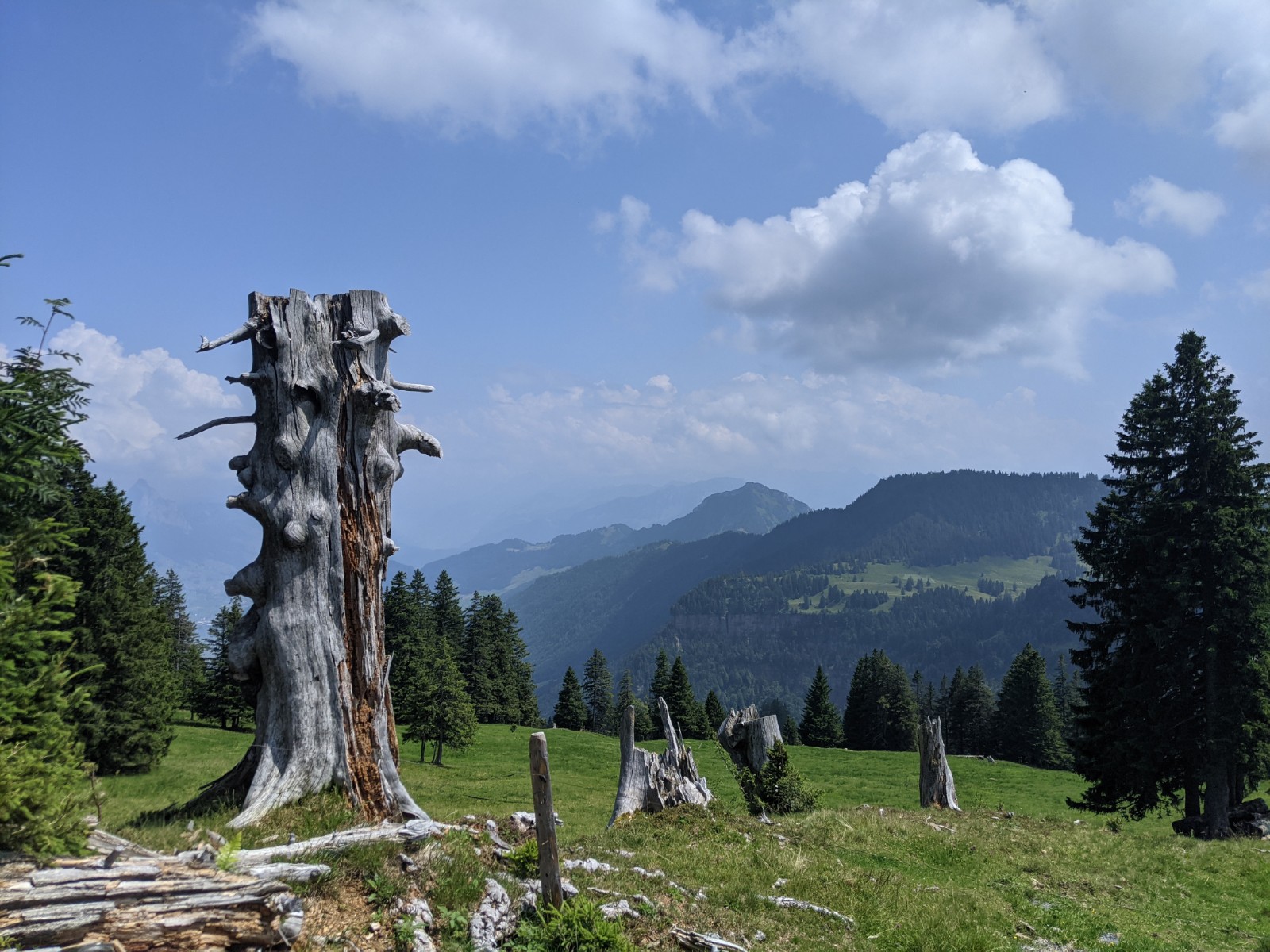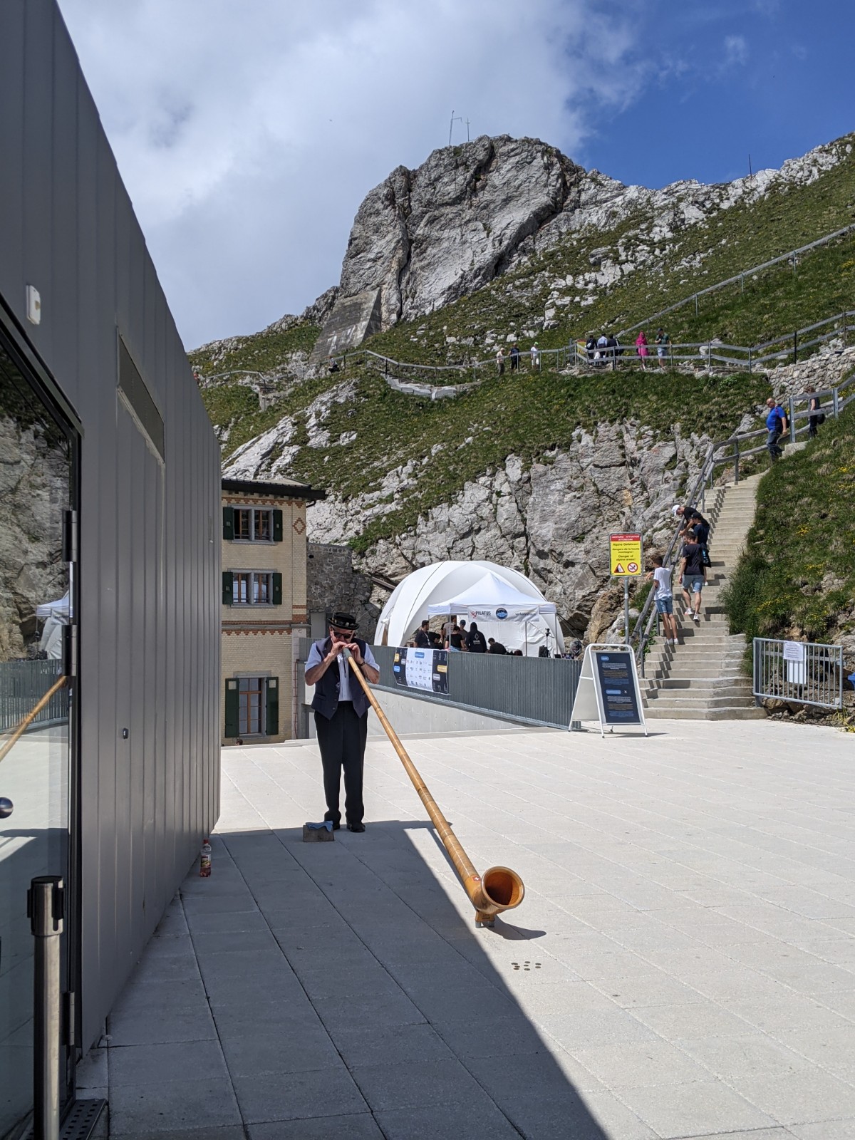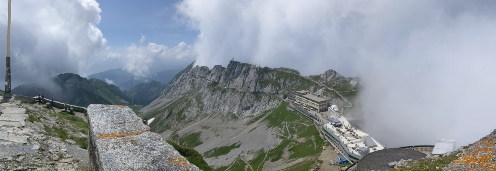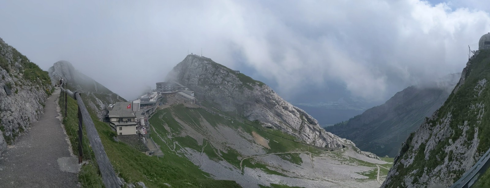 But it’s the clanging bells one hears. The sound comes from every direction, the clattering of thousands of plates stuck loosely in a box, or a bell choir trying and utterly failing to keep time when the members are spread from one end of the cliff side to the other. All these bells hang from the necks of cows as they graze on the sloping fields of mountainsides, better to keep track of them as they wander among the shaggy grassland. It’s a marker of an age-old tradition, when herders would take flocks up to the mountains to graze during the summer, and back down to the plateaus during the winter. It doesn’t matter how many hikers and tourists walk the dirt and gravel paths or stuff themselves into cogwheel trains to make their ways up and down the cliff sides, the bells still jangle, even as one steps to the highest point of Mount Pilatus, where the entire length of the north side of the mountain is shrouded in a mist thick enough to chew on, one can still hear the bells far below. On Mount Rigi, the slopes are absolutely full of them, even near the peak.