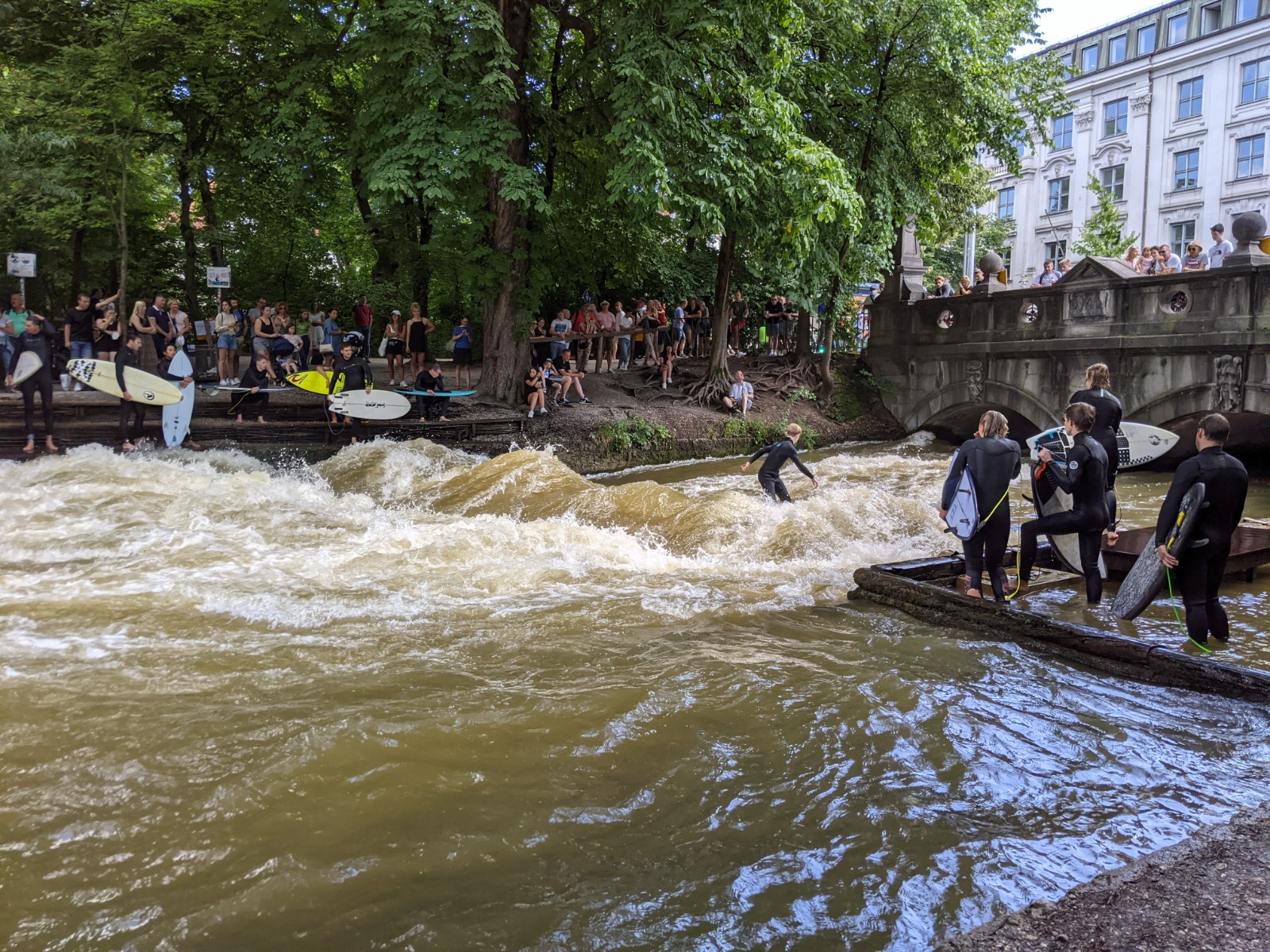 But there is something else here, a balance that does not seem to exist in the states. People here do work hard, you can tell, but they also maintain bountiful time for leisure. In the middle of the day, at the English Garten in Munich, one can find surfers taking turns throwing themselves into the onrushing brown waters of the Eisbachwelle to surf. In Freiburg, where small canals run along the sides of the old brick streets among the colored sandstone and the half-timbered structures of the old town, there can be a sense of calm amidst the crushing weight of the hundreds who crowd these old streets. The streams of water, or the Bachle, tingle down old cobblestone channels that the the slight slopes in the streets, and are all fed from the same source, the Dreisam river. You can tell who is from here and who isn’t by how they interact with those Bachle. In the evening, those who reside her take off their shoes and relax their feet in the streaming water. Some small cafes stick their few tables and stools directly in the path of the stream, meaning patrons eat and drink with the river running directly underneath.