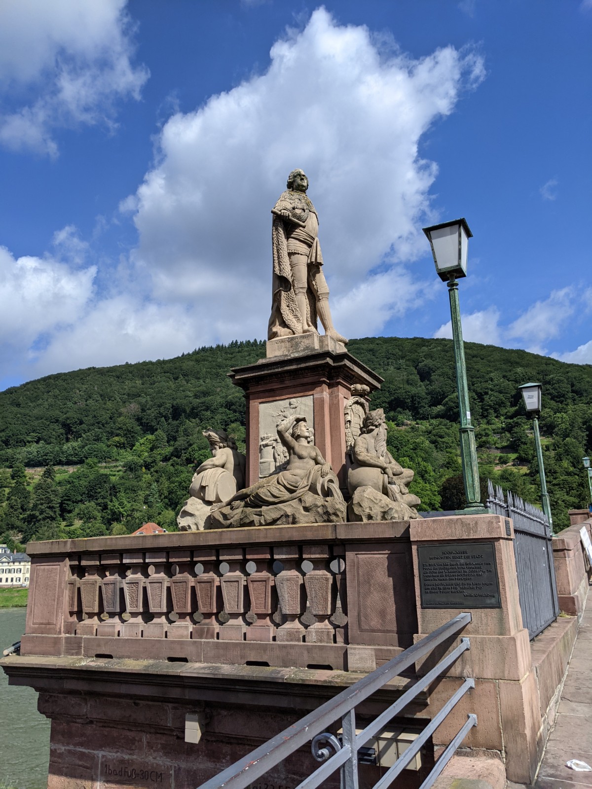 There, the streets grow so packed in as the sun descends. This past Saturday, in that peak of the morning I strolled through a park edging on the serene Neckar River and read under the blooming leaves of a thick, old and knotted tree. After that I climbed the 300 meters up to the Schloss Heidelberg, and contemplated the Baroque era architecture and statues adorning that old, crumbling fortress. Into the late hours of a Saturday, the bars and cafes become the public’s only focus. I found the one spot in the old town separated from the rest thanks to red and white blockades denoting construction. The air grew cooler, and the drink did not warm me and it did not fill my empty stomach. But one makes due.