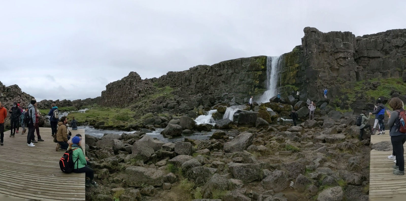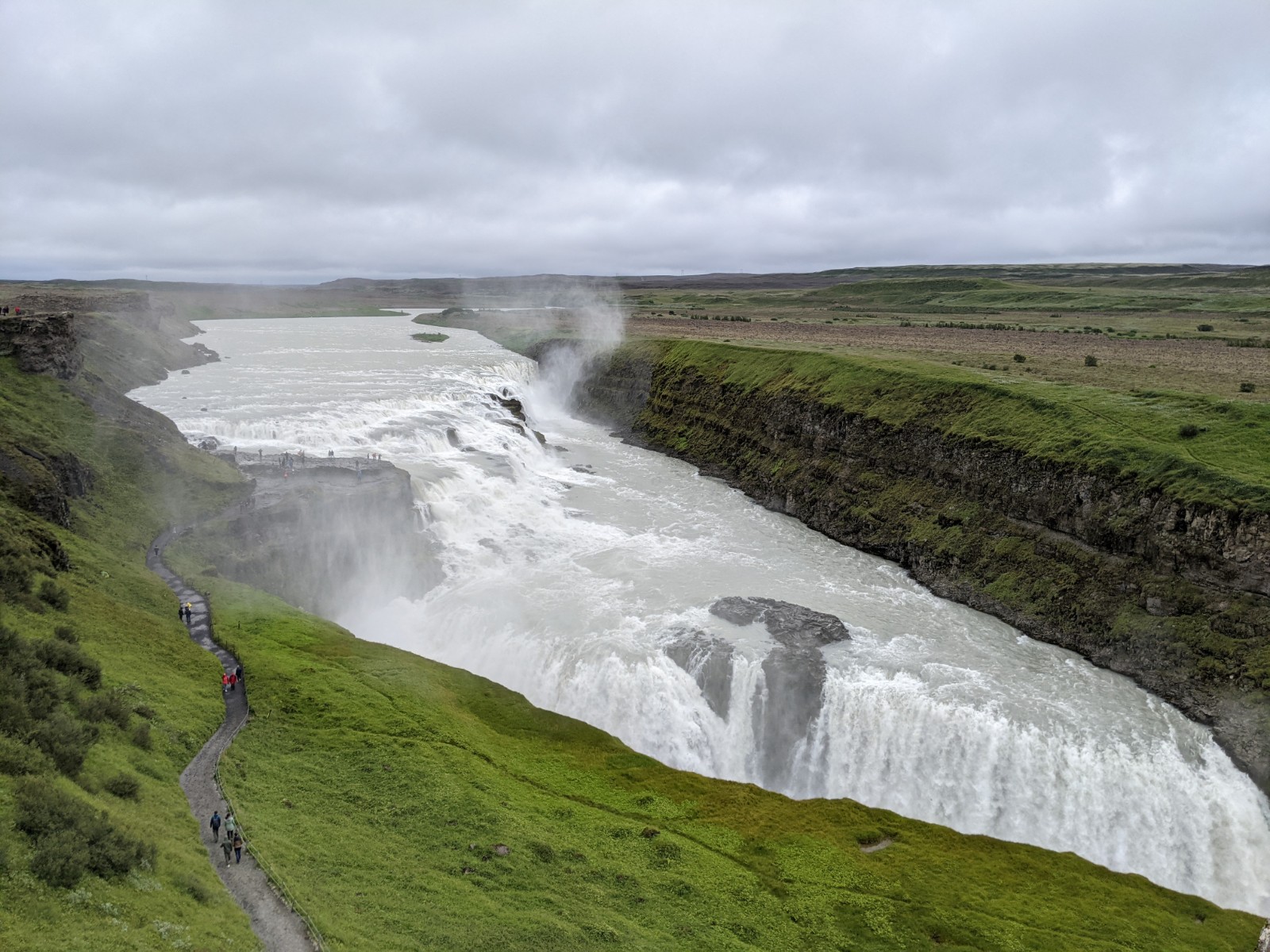 On a tour of these sites on a route that’s called the Golden Circle, the most popular tourist route in Iceland, perhaps the most amazing and indicative of this environment is the enormous Gullfoss Waterfall. It’s the second largest waterfall in Iceland, and if there’s anything to make one comprehend the absolute power of earth’s natural forces, it’s something like that.